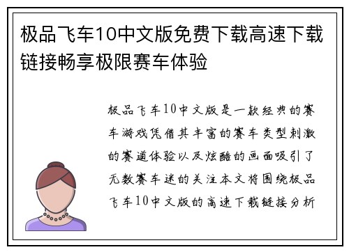 极品飞车10中文版免费下载高速下载链接畅享极限赛车体验