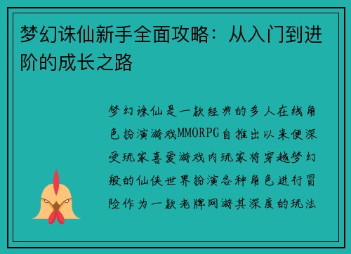 梦幻诛仙新手全面攻略:从入门到进阶的成长之路